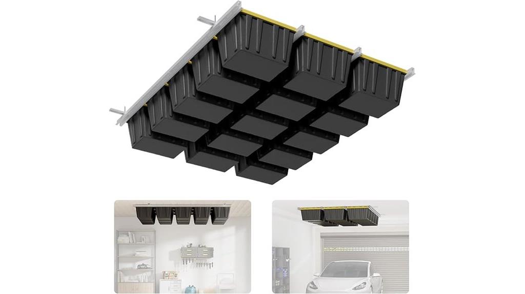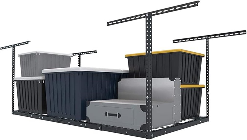 Best For: homeowners and garage owners seeking a durable, customizable overhead storage solution to maximize space and organize large totes efficiently.