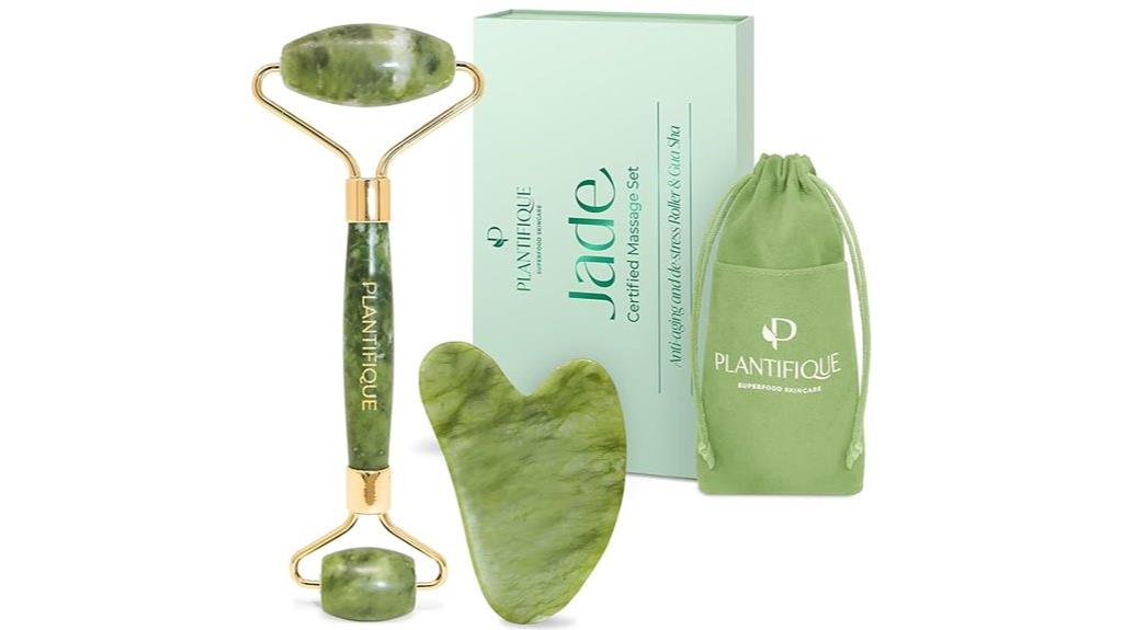 PLANTIFIQUE Jade Roller & Gua Sha Set for Skin Care