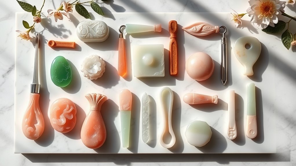 Choosing a durable Gua Sha set means paying attention to the materials and how well they hold up over time. High-quality options like stainless steel, jade, or quartz are resistant to chipping and cracking if cared for properly. Regular cleaning with warm water and mild soap keeps the surface smooth and prevents oil or dirt buildup that can cause deterioration. Handling your tools carefully—avoiding drops and excessive force—extends their lifespan and prevents damage. When not in use, storing them in protective cases or pouches safeguards against scratches, chips, and accidental breakage. Finally, regularly inspecting your Gua Sha for signs of wear, such as cracks or sharp edges, ensures safe use. Replacing damaged pieces maintains their effectiveness and keeps your skincare routine safe.
