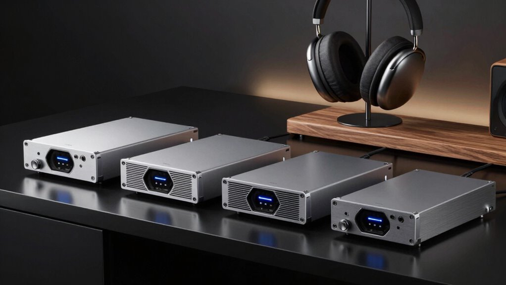 If you’re searching for the 12 best headphone amps with balanced output for 2026, I’ve found some excellent options. These range from high-power desktop units like the FiiO K11 to portable and multi-channel devices like Moukey’s amplifier. There are also high-resolution DAC amps, versatile models like the TOPPING L70, and tube hybrids such as the Apos Gremlin. Stay with me, and you’ll discover detailed info on each one to find the perfect match for your needs.
