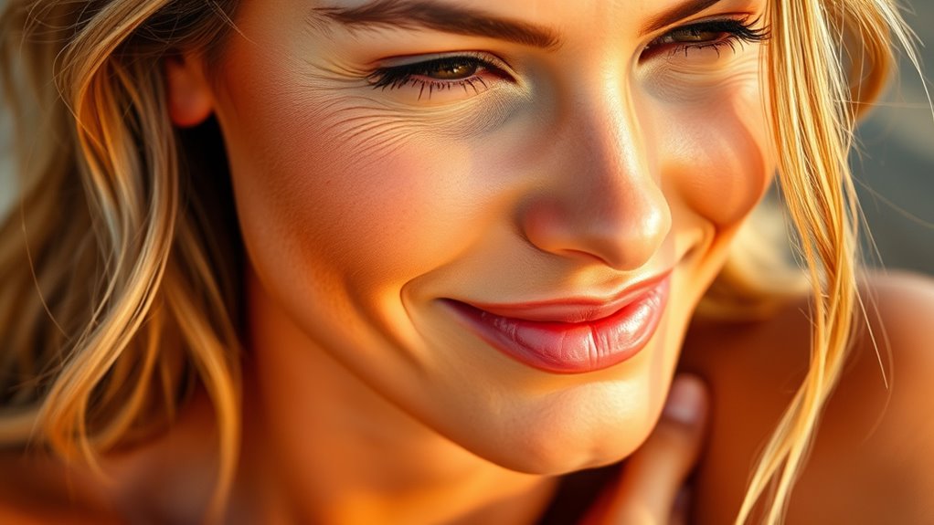Ever wondered how to choose a self-tanner that works perfectly with your skin type? It’s essential to pick formulas tailored to your skin’s needs. If you have sensitive skin, look for products free from alcohol, fragrances, and harsh chemicals to avoid irritation. Oily or acne-prone skin benefits from lightweight, oil-free tanners that won’t clog pores or trigger breakouts. For dry skin, opt for hydrating formulas enriched with ingredients like aloe vera, shea butter, or coconut oil to guarantee an even, streak-free glow. Fair or pale skin tones should consider gradual or buildable tanners to achieve a natural look without turning orange. Deep or darker skin tones may prefer more pigmented formulas or those with color correction to prevent washed-out results.