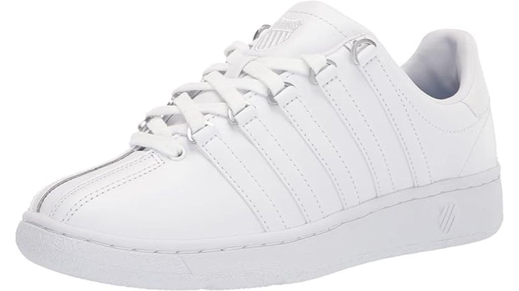 If you’re after a versatile, timeless sneaker that combines classic style with high-quality materials, the K-Swiss Womens Classic VN Leather Sneaker is an excellent choice. Its all-black leather design, detailed stitching, and stylish shoelace eyelets give it a sleek, clean look that pairs well with dresses or jeans. Many find them comfortable after a break-in period, though the leather is initially stiff. They offer durability, maintain their appearance over time, and are easy to clean. While some notice minimal arch support and slight rubbing initially, adjusting the laces helps. Overall, these sneakers deliver a perfect blend of fashion and function for everyday wear.