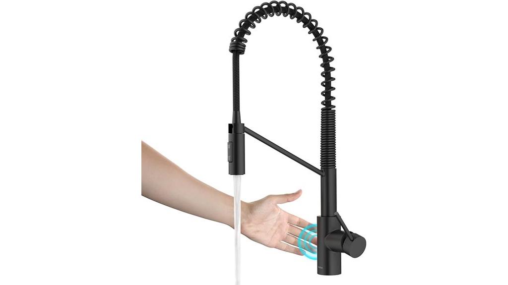 Sensor responsiveness is crucial for ensuring your pull-down touchless kitchen faucet works smoothly and without frustration. A highly responsive sensor reacts within milliseconds, making water flow seamlessly when you move your hand or an object into its detection zone. This quick response minimizes delays and enhances convenience, especially during busy kitchen tasks. Many advanced sensors use infrared or ultrasonic technology, which reliably detects motion even when hands are wet or soapy. Additionally, adjustable sensitivity settings help prevent false activations from steam, light, or nearby movement, reducing water waste and frustration. Inconsistent sensor response, however, can cause difficulties in activating the faucet or lead to unnecessary water use. Choosing a faucet with reliable, adjustable sensor responsiveness ensures a smooth, frustration-free experience.