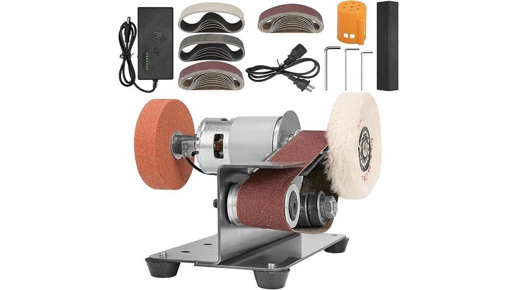 A multifunctional electric knife and tool sharpener stands out as an excellent choice for DIY enthusiasts and hobbyists who need versatility in their sharpening tools. It features 7 adjustable speeds suitable for hunting, serrated, and kitchen knives, plus woodworking and crafts. The fixed 15-degree belt ensures efficient sharpening, and it can convert into a mini belt grinder for DIY knife making. Powered by a high-quality copper motor running up to 9,000 RPM, it offers strong torque and low noise. Compact and stable, it’s perfect for small projects, providing quick, effective sharpening for various tools—though some users find belt changes and durability could be improved.