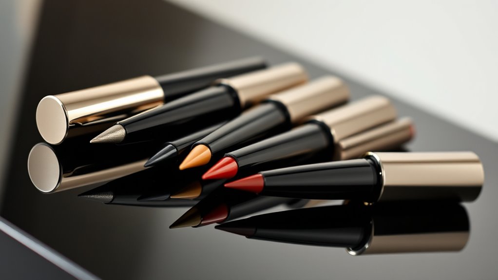 So there you have it—my top picks for luxury waterproof, smudge-proof liquid eyeliners that truly elevate your look. Whether you’re channeling Cleopatra or just aiming for a flawless wing, these formulas have got you covered. Remember, choosing the right liner isn’t unlike selecting your armor before battle; it’s about confidence and style. Plunge into and find your perfect match—your eyes deserve nothing less than legendary. Cheers to a stunning, smudge-free gaze!