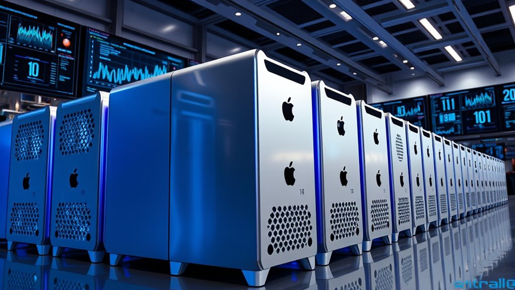 Think of the Mac Pro as a skilled conductor seamlessly harmonizing with your existing enterprise IT infrastructure. I find that it integrates smoothly through robust network protocols, compatible management tools, and cross-platform support. Its high-speed connectivity options and Apple’s ecosystem make data flow effortless, ensuring your systems work together like a well-orchestrated symphony. This harmony boosts efficiency and keeps your enterprise running smoothly without missing a beat.