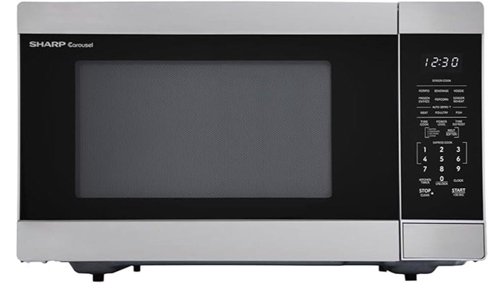 For anyone seeking a reliable and versatile countertop microwave, the SHARP SMC1162KS stands out with its 1.1 cu. ft. capacity and powerful 1000W performance. Its stainless steel finish and sleek design make it a stylish addition to any kitchen. The carousel turntable ensures even heating, while features like auto cook, auto defrost, and one-touch controls simplify meal prep. With 10 power levels and a +30 seconds key for quick starts, it’s perfect for reheating, quick cooking, and snack making. Users praise its speed and ease of use, though some note it’s a bit loud. Overall, it offers great value and reliable performance.