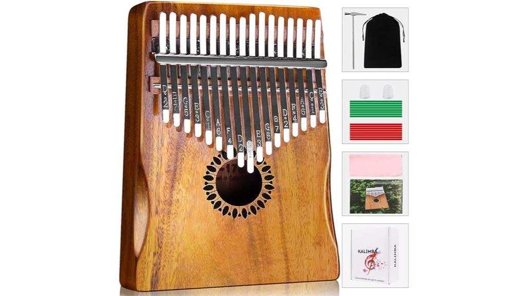 - Includes accessories like thumb guards, tuning hammer, stickers, and a storage bag for easy practice and transport.