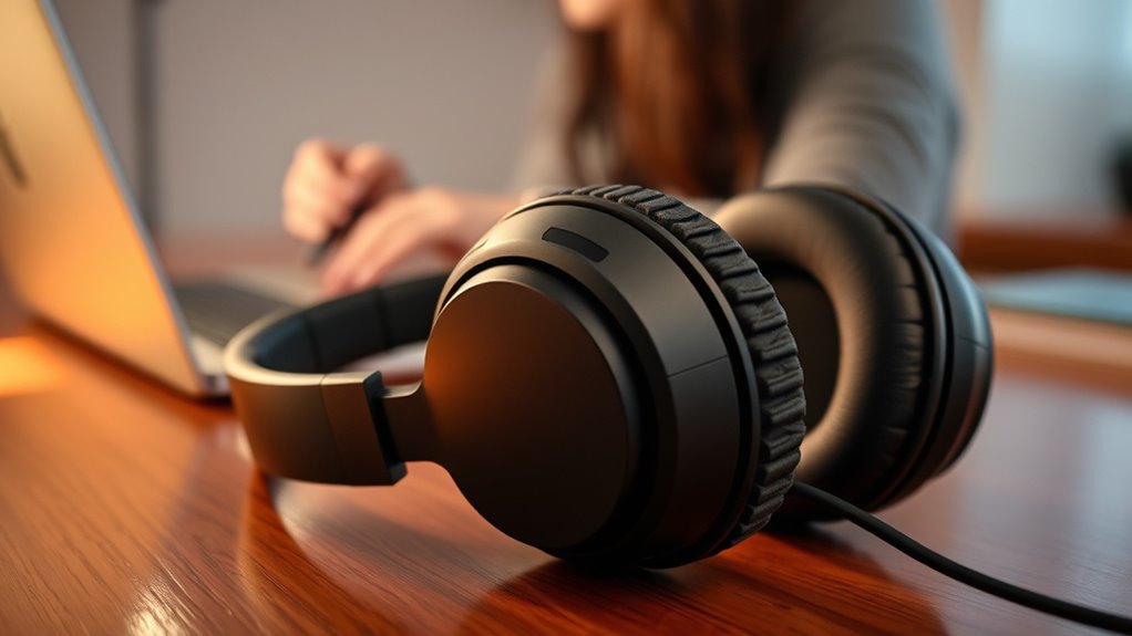 To keep my headphones in top shape and maintain their noise-canceling power, I regularly clean the ear cups and check for debris. I store them in a case when not in use and avoid exposing them to extreme temperatures or moisture. I also keep the firmware updated and handle them gently to prevent damage. These simple steps help me enjoy clear sound and effective noise cancellation longer.