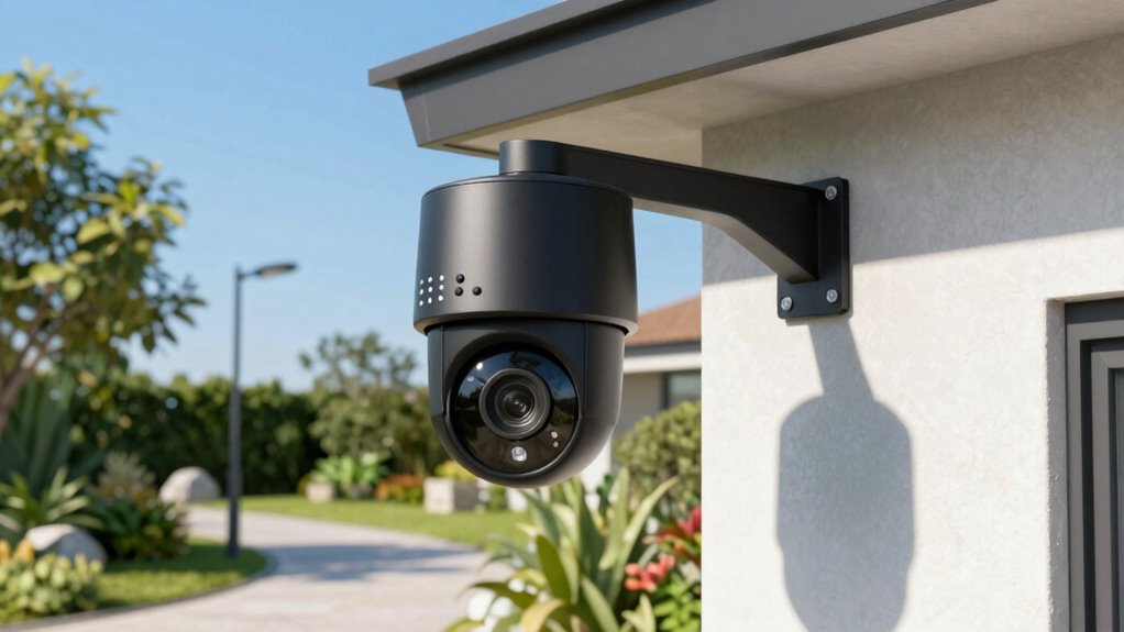Have you ever wondered how well an outdoor security camera can see in complete darkness? The effectiveness largely depends on its night vision range, which typically spans from 30 to 100 feet. Cameras equipped with infrared LEDs deliver black-and-white footage, with more LEDs and strategic placement boosting clarity and distance. Some models feature spotlights or color night vision, providing better visibility in low-light conditions. High-quality night vision guarantees clear, noise-free footage without graininess, even at maximum range. Proper placement and ambient lighting also play vital roles in enhancing nighttime surveillance. When choosing a system, consider the camera’s infrared capabilities and how well it can adapt to your environment to ensure you get sharp, reliable footage in total darkness.