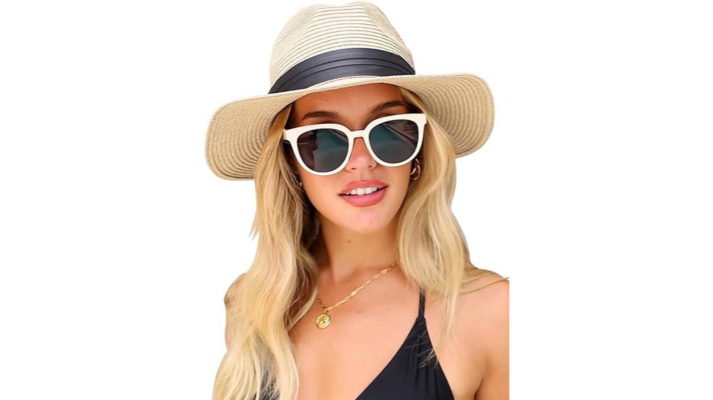 This wide brim fedora straw Panama beach hat stands out for offering UV UPF 80+ protection, making it an excellent choice for anyone seeking reliable sun coverage. The hat features two interchangeable ribbons—black and plain—allowing you to switch up your style easily. Its foldable design makes it perfect for travel, and the security lace ensures it stays put in windy conditions. Lightweight and breathable, it offers a comfortable fit without headaches, suitable for daily wear, the beach, or pool days. Durable and well-constructed, this hat balances fashion and function, providing versatile sun protection with a trendy, practical look.