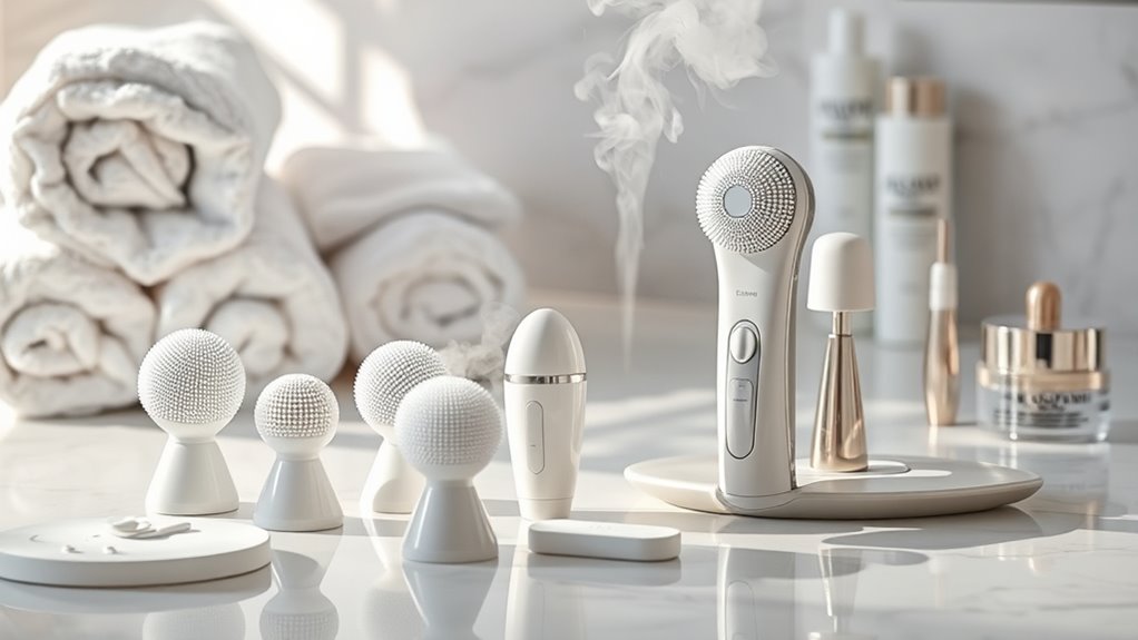 Imagine your skincare routine as a symphony, and these premium devices are your maestro’s baton. They’ll help you orchestrate radiant, glowing skin with ease and grace. Whether you crave gentle cleansing or soothing steam, these tools transform daily rituals into luxurious spa experiences. So, pick your perfect partner and let your skin sing with health and vigor—because you deserve nothing less than a flawless masterpiece. Your radiant glow is just a device away!