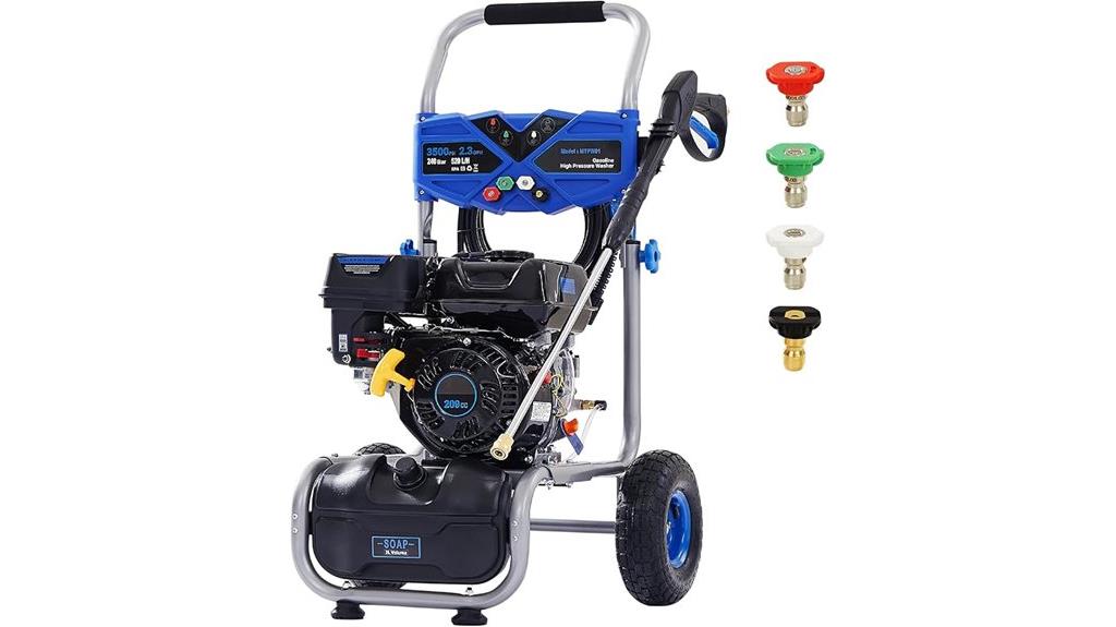 - Delivers professional-grade pressure with 3500 PSI and 2.3 GPM for efficient cleaning