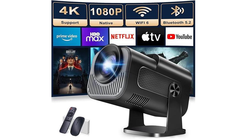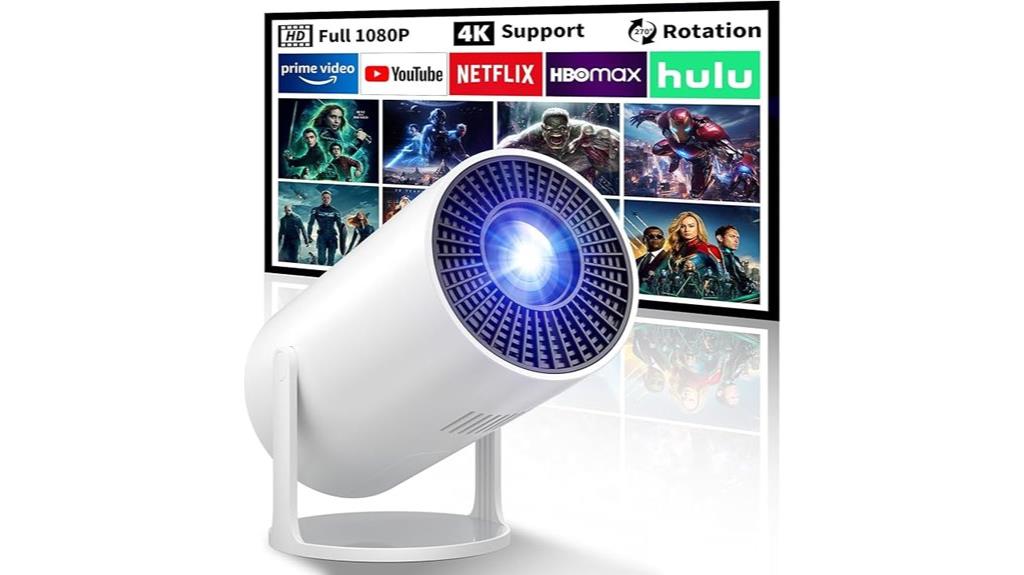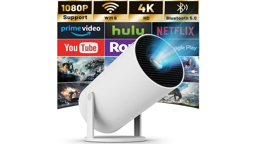 Best For: cinephiles and families seeking a portable, feature-rich projector with extensive streaming options and easy setup for indoor and outdoor entertainment.