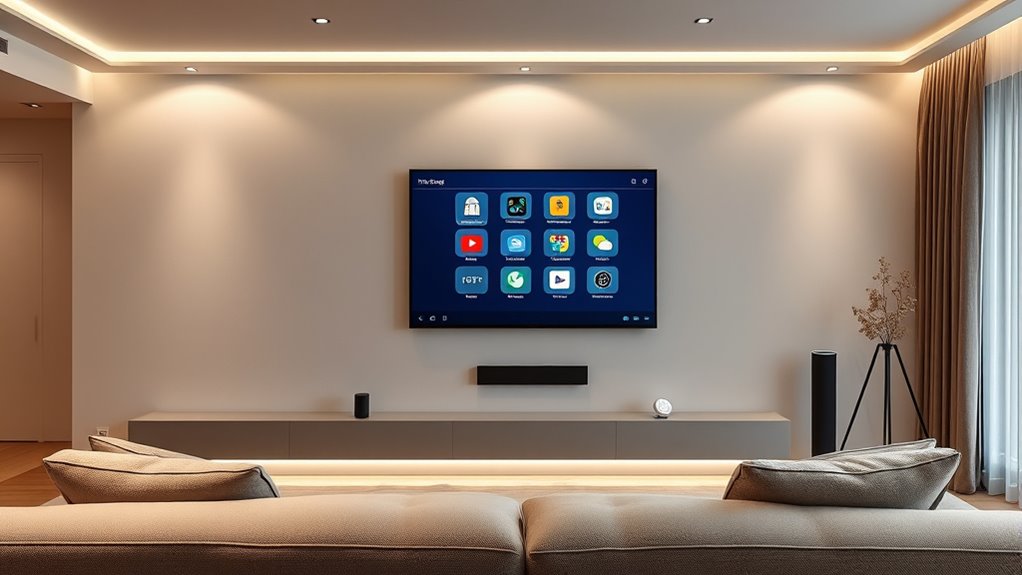 Ensuring my smart home remains private and secure is just as important as keeping it connected. I look for hubs that use strong encryption, like end-to-end, to protect my data from breaches. Privacy controls, such as physical shutters for microphones and cameras, give me peace of mind. I also check if the hub lets me manage voice recordings and usage data easily. Features like wake word detection and real-time activity indicators let me know when devices are listening or recording, adding transparency. I review the data handling policies—how long data is stored, if it’s shared, and how I can delete it. In conclusion, I prefer hubs that receive regular security updates, ensuring ongoing protection against vulnerabilities. Security is essential for a truly safe smart home.