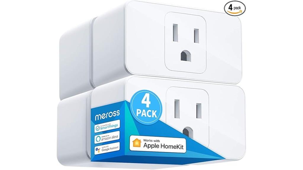 For homeowners seeking a reliable, easy-to-use smart plug compatible with Apple HomeKit, the meross Smart Plug Mini stands out. It supports up to 15A and integrates seamlessly with Siri, Alexa, Google Assistant, and Nest Hub. The 4-pack offers excellent value, and setup is straightforward—just scan the QR code with your iPhone. Its compact size allows stacking two plugs in one outlet, making it versatile for managing multiple devices. Control is possible via app, voice, or scheduled timers, including sunrise and sunset settings. While the design is bulkier than some competitors, its reliable performance and broad compatibility make it a solid choice for smart home enthusiasts.