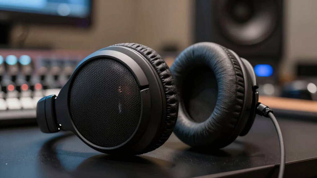 Choosing the right open-back studio headphones is like finding a window into your music—clear, expansive, and true. While some might chase the latest features or brand names, I believe it’s about balancing comfort and sound accuracy. Like a painter needs the right brush, your music deserves the perfect pair. In the end, it’s not just about hearing, but truly feeling every note. So, pick wisely—your sound journey awaits.
