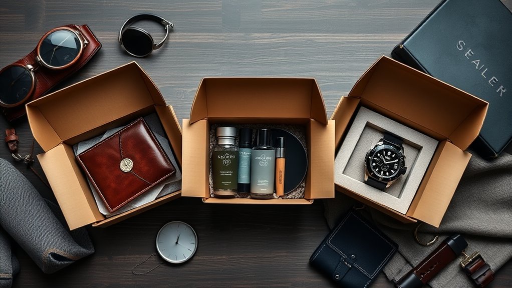 When selecting a men’s subscription box, it’s important to look beyond just the theme or personalization options and focus on the overall value it offers. I evaluate whether the total cost matches the quantity and quality of items included, ensuring it’s worth the price. A good box should feature a diverse mix of products that suit the recipient’s interests and preferences. I also consider if the box offers exclusive or premium items that add perceived value beyond standard retail. Flexibility matters too—options to skip or customize deliveries can make the subscription more cost-effective. In conclusion, I review customer feedback and ratings to confirm that the perceived value aligns with the actual content and service quality, helping me choose options that truly deliver.