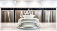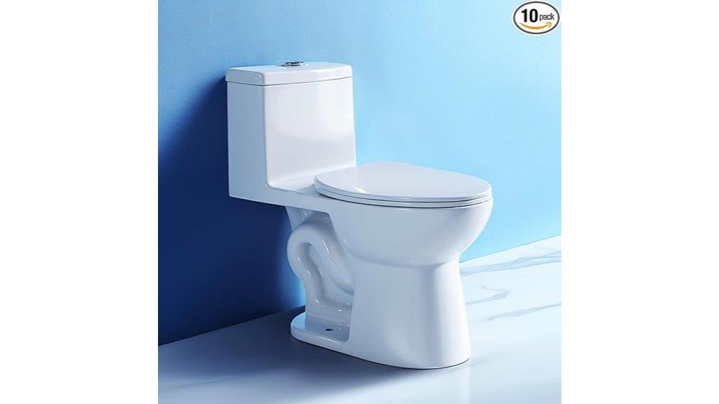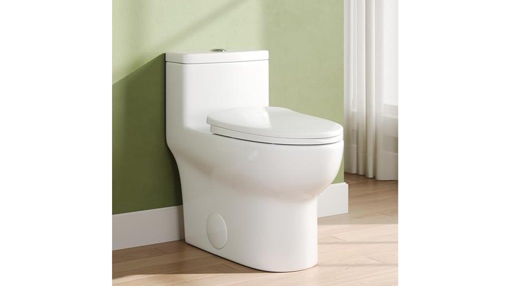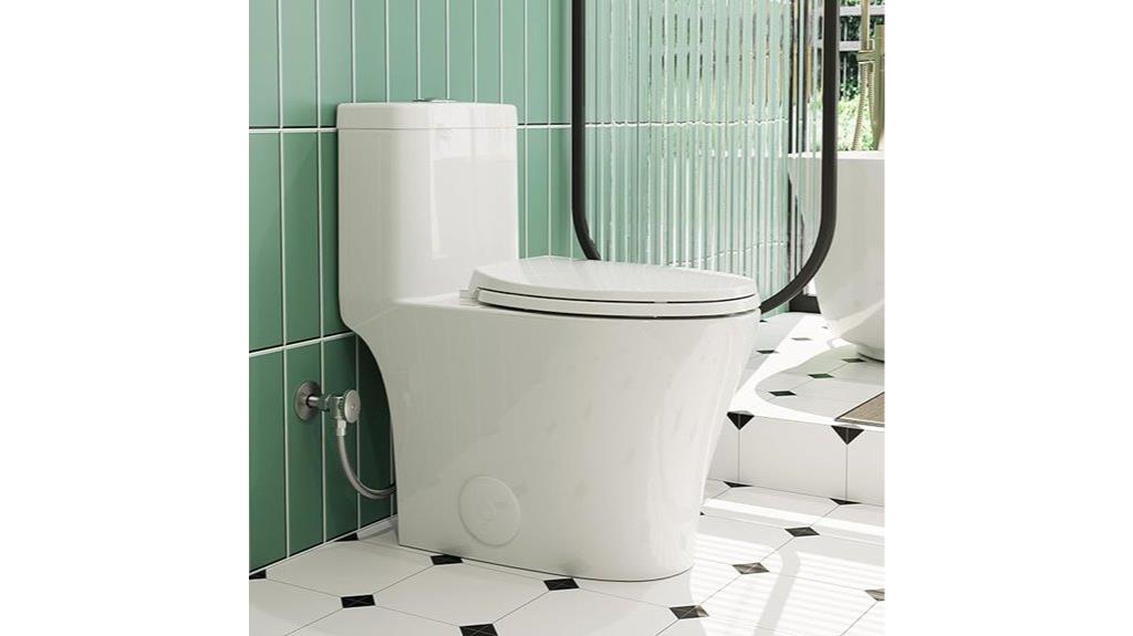 Are you looking to cut down water bills while maintaining reliable flushing performance? If so, consider toilets with dual flush options that use only 0.8 to 1.28 GPF. These models can save up to 16,500 gallons of water annually compared to traditional 3.5 GPF toilets. WaterSense certified toilets meet strict efficiency standards, ensuring you don’t sacrifice performance for conservation. Fully glazed ceramic surfaces and high-efficiency flushing systems minimize waste residue, reducing the need for multiple flushes. Larger siphonic jet systems improve waste removal, cutting down on clogs and water waste. Compact, integrated designs with dual flush options help support sustainable water management while still delivering powerful, reliable flushing. Choosing these features helps you conserve water without compromising comfort or cleanliness.