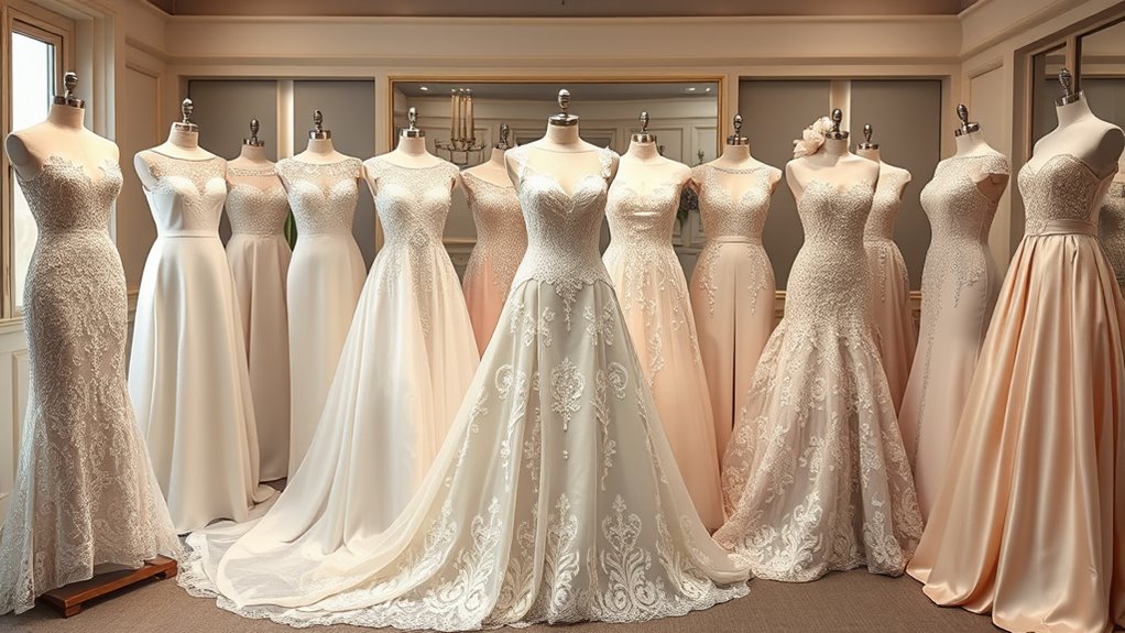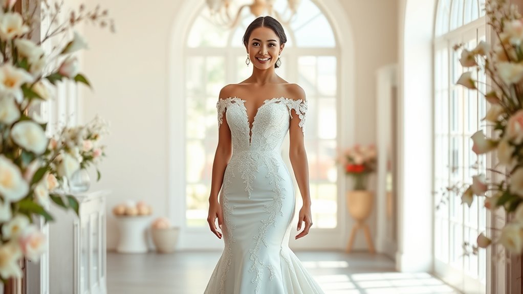 Choosing the perfect wedding dress depends on understanding your body shape and highlighting your best features. I recommend trying different styles to see what feels comfortable and flattering. For hourglass figures, fit-and-flare dresses work beautifully, while A-line gowns suit many body types. Don’t forget to contemplate neckline and fabric choices. Trust your instincts, and remember, the right dress should make you feel confident and radiant on your big day.