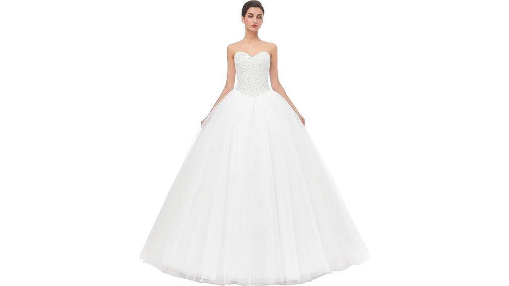 If you’re dreaming of a princess-like wedding look, women seeking a glamorous, voluminous gown will love the ball gown bridal dresses of 2025. Made from luxurious tulle and satin, these dresses come in white and ivory, featuring lace-up backs, built-in bras, and intricate beadwork or sequined embellishments. Their poofy, elegant silhouette offers a flattering fit thanks to adjustable corsets and forgiving sizing. Customers rave about the high-quality fabric, sturdy construction, and stunning details that make these dresses stand out. Perfect for creating a fairytale bridal moment, they’re versatile, comfortable, and well worth the investment for your unforgettable day.