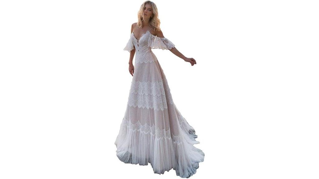 Best For: brides seeking a romantic, outdoor or boho-inspired wedding dress with lace and ruffle sleeves that offers high quality and a flowy, beachy aesthetic.