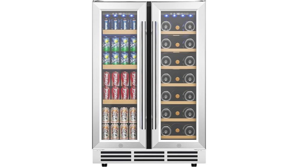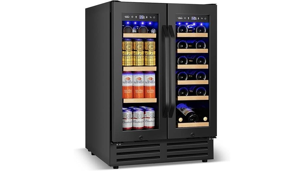 - Dual-zone temperature control allows independent regulation for wine and beverages, ensuring optimal preservation.
