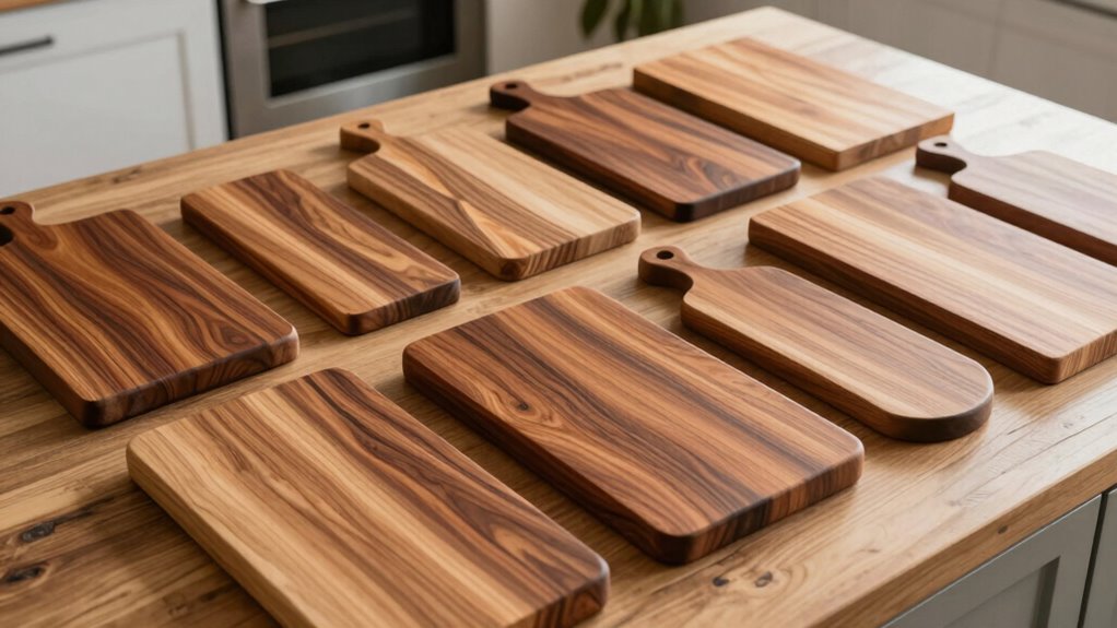 Think of choosing a wooden cutting board like finding the perfect dance partner—trust, balance, and harmony make the best match. With the right board, your knives glide smoothly, turning prep work into a graceful performance. So, pick one that feels just right, and you’ll be dancing through your kitchen tasks with ease and joy. After all, a great cutting board isn’t just a tool; it’s your partner in culinary rhythm.