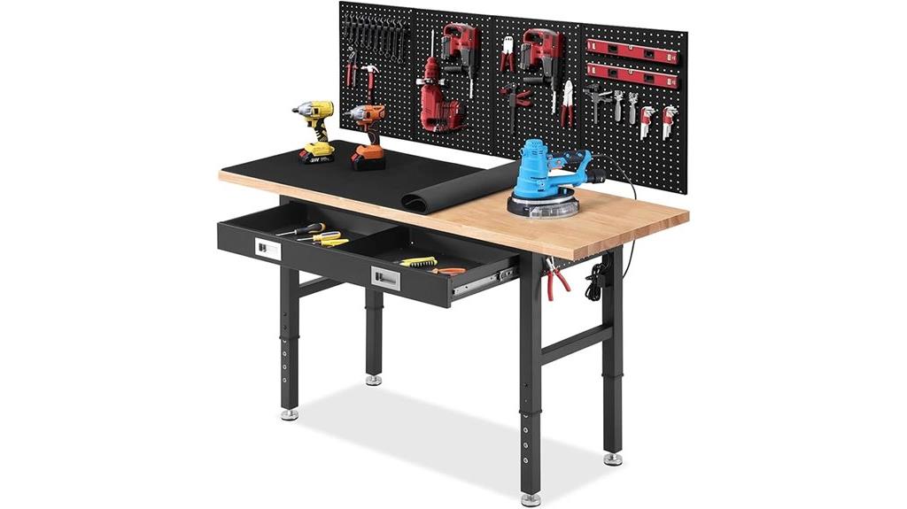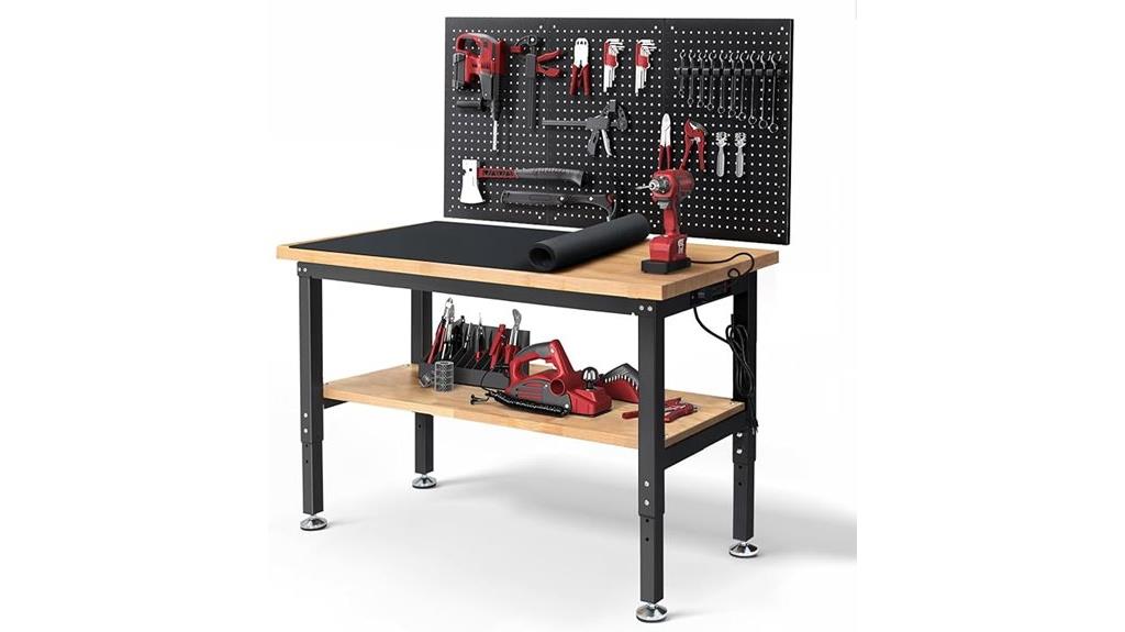 - Integrated power outlets and pegboards enhance organization and convenience during work