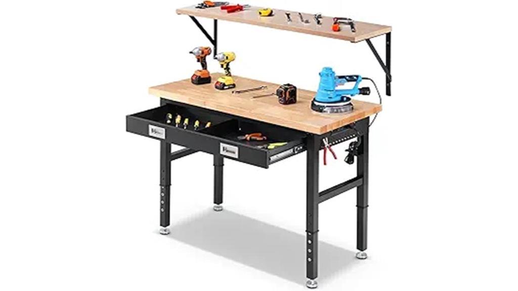 Best For: DIY enthusiasts, hobbyists, and professionals seeking a durable, adjustable-height work table with ample storage and power accessibility for versatile workshop tasks.
